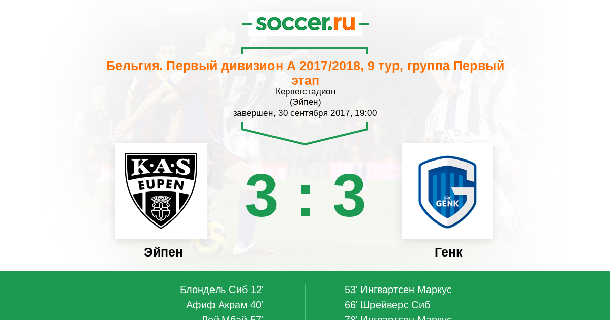| Бельгия. Про-Лига | 19 | 3 | 13 | 3 |