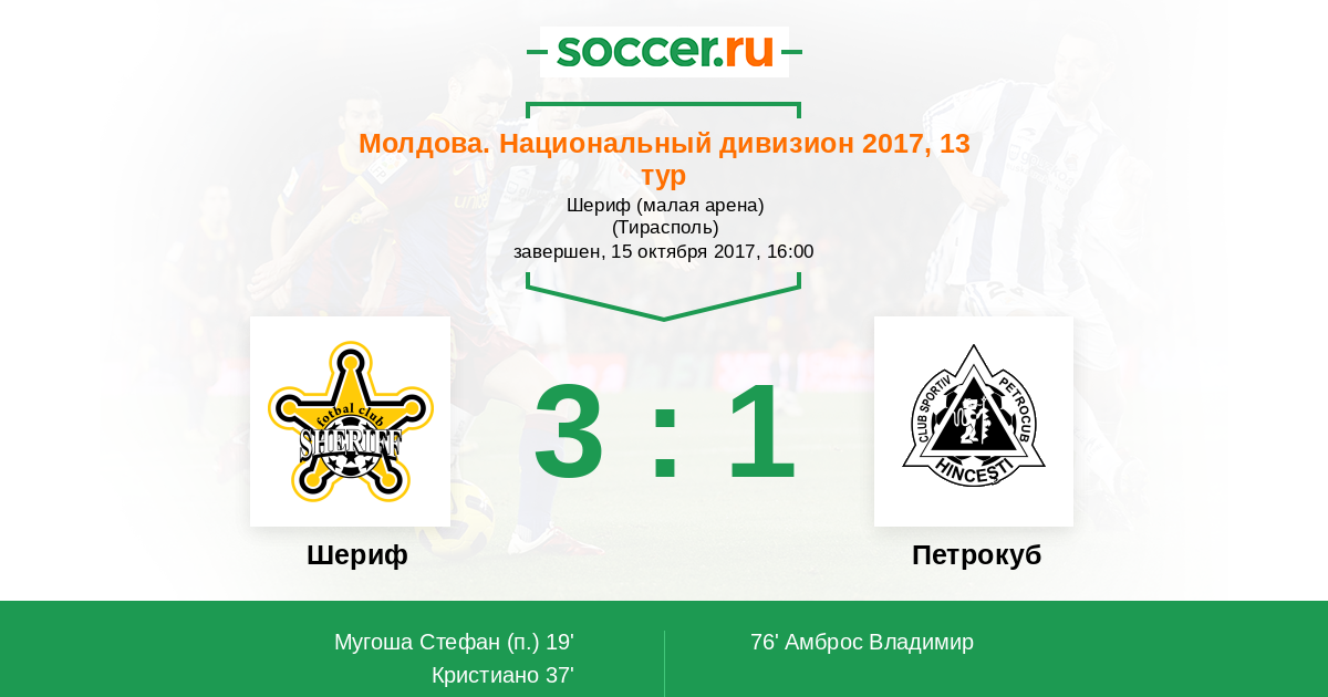 | Молдова. Национальный дивизион | 38 | 18 | 7 | 13 |