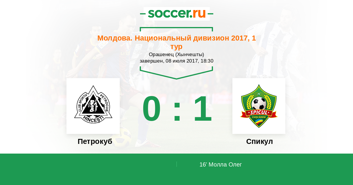 | Молдова. Национальный дивизион | 1 | 1 | 0 | 0 |