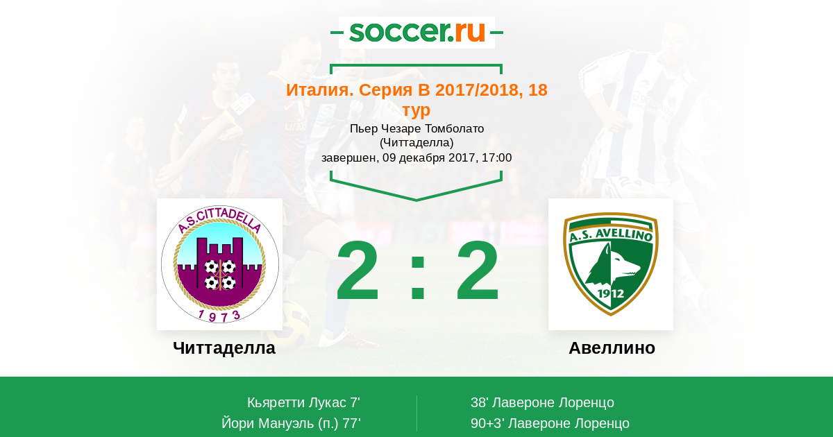 | Читтаделла | 4:3 | 1:3 | 3:0 |