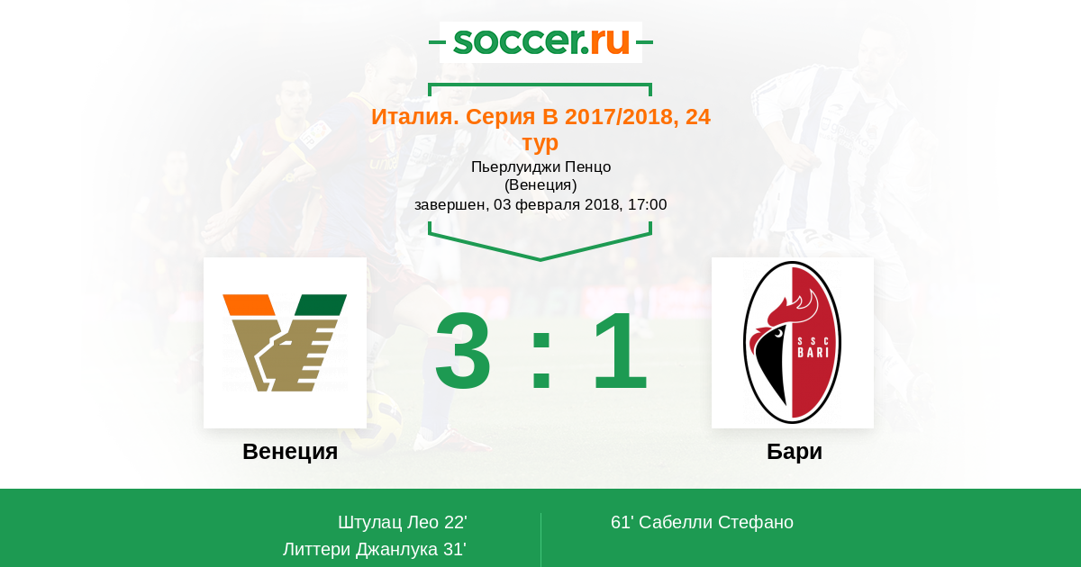 | Венеция | 11:5 | 6:4 | 5:1 |