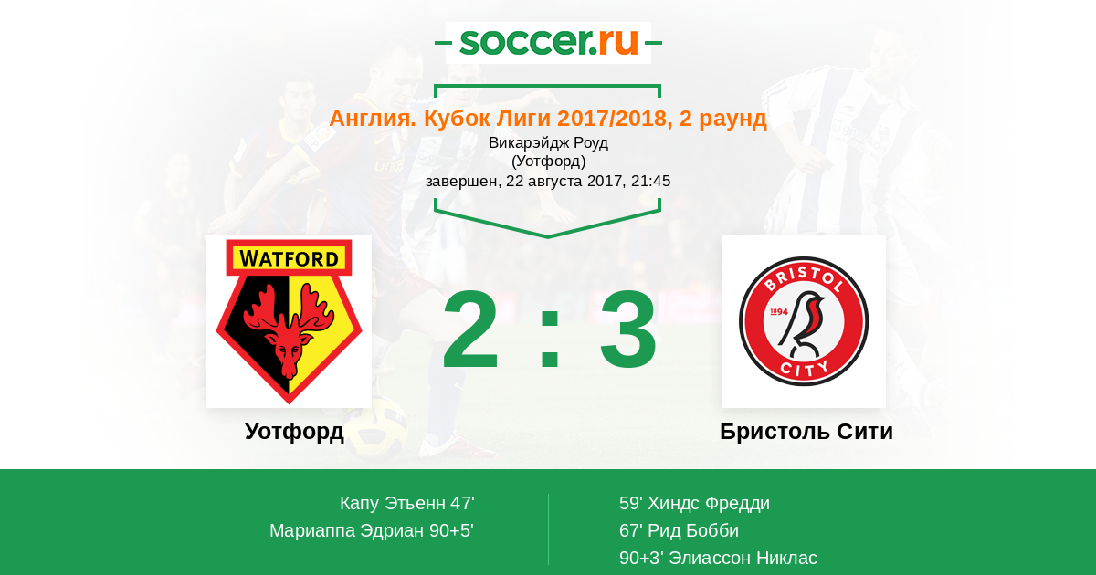 | Уотфорд | Бристоль Сити | |