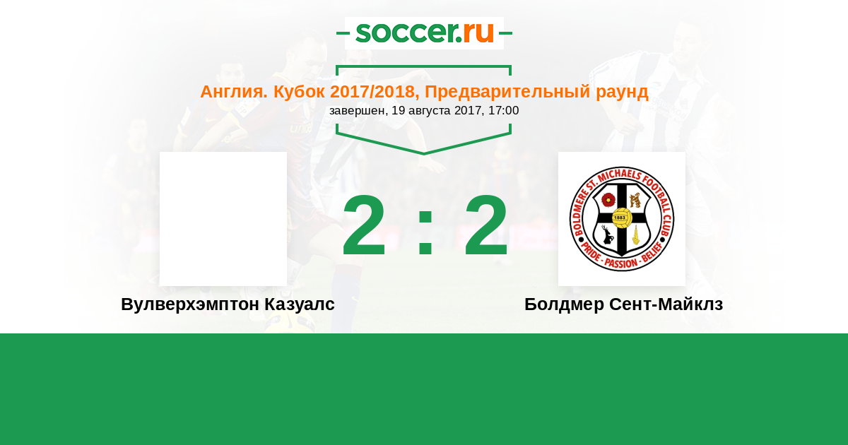 | Вулверхэмптон Казуалс | Болдмер Сент-Майклз | |