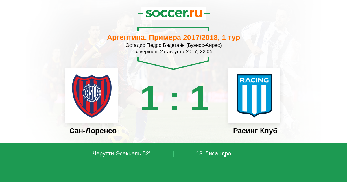 | Сан-Лоренсо | 52:63 | 33:28 | 19:35 |