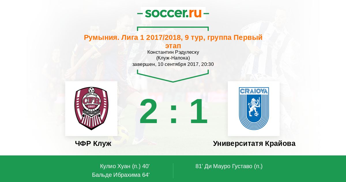 | ЧФР Клуж | 50:44 | 24:20 | 26:24 |