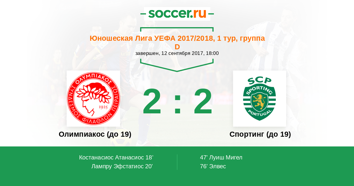 | Олимпиакос (до 19) | Спортинг (до 19) | |