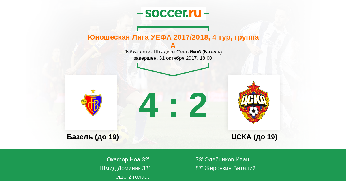 | Базель (до 19) | 3:2 | 0:0 | 3:2 |