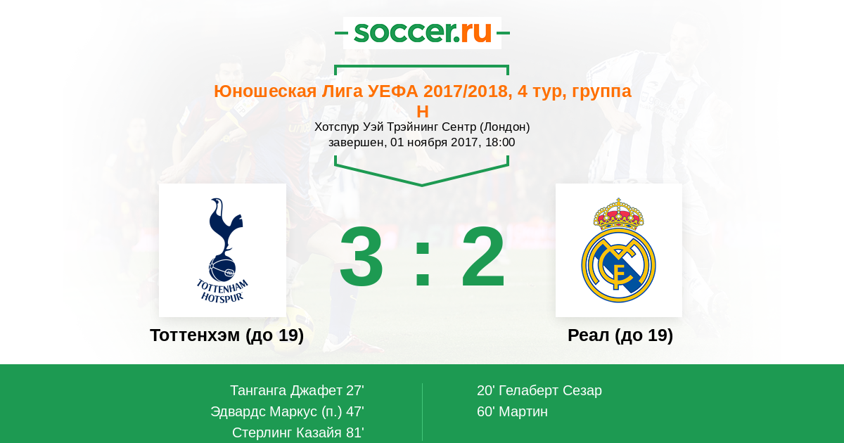 | Тоттенхэм (до 19) | Реал (до 19) | |