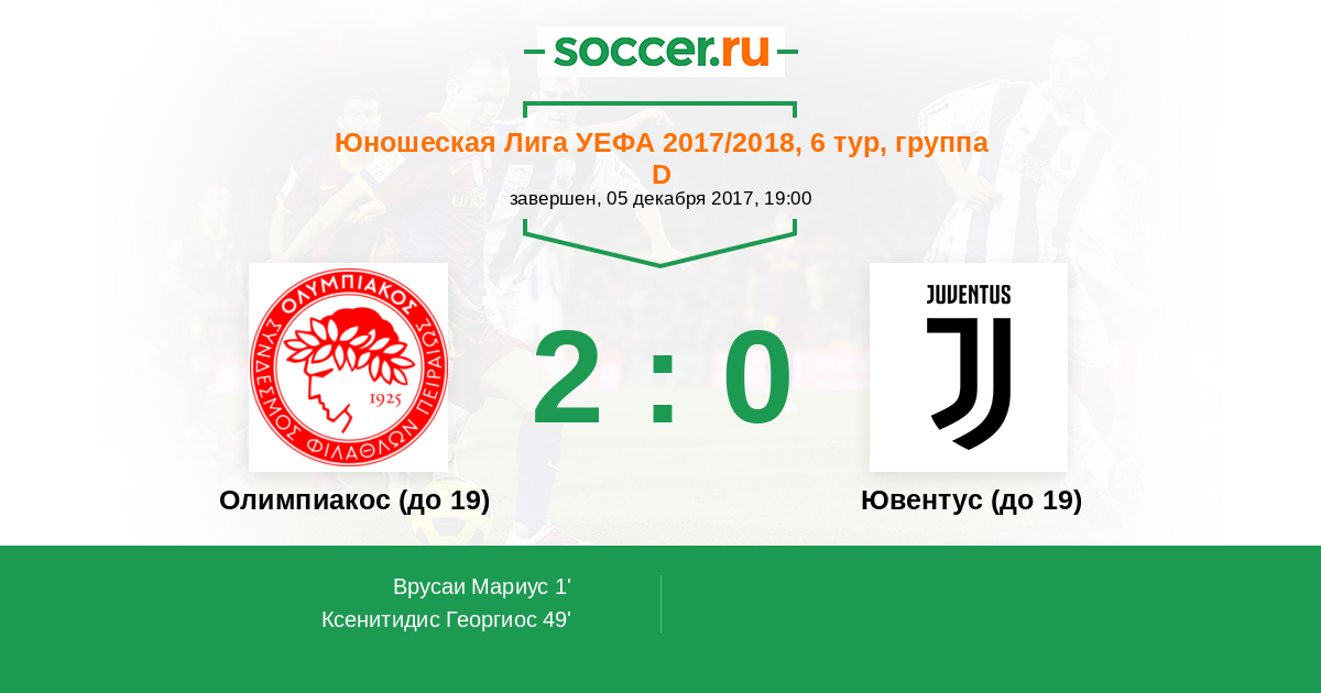 | Олимпиакос (до 19) | Ювентус (до 19) | |