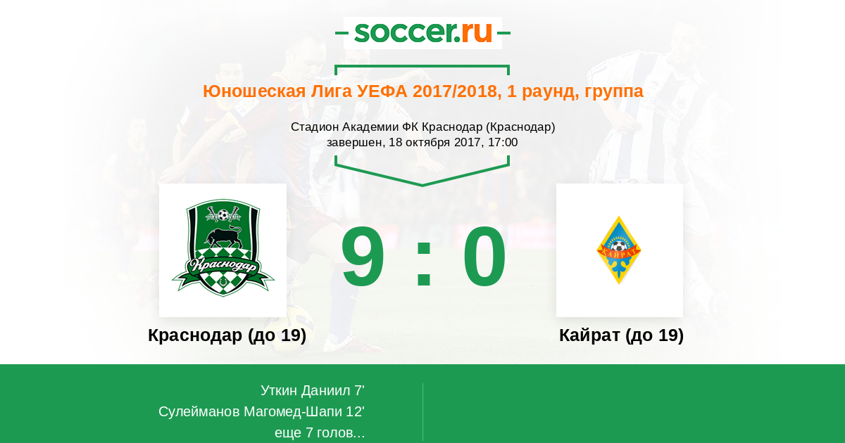 | Краснодар (до 19) | Кайрат (до 19) | |