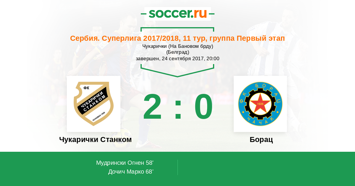 | Чукарички Станком | 2:2 | 0:0 | 2:2 |