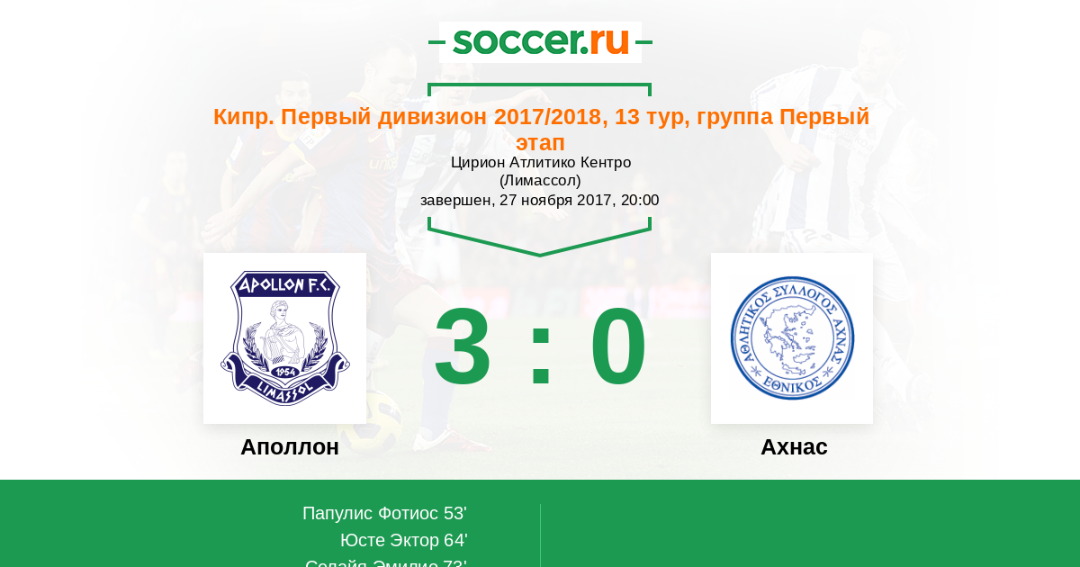 | Кипр. Первый Дивизион | 60 | 34 | 11 | 15 |
