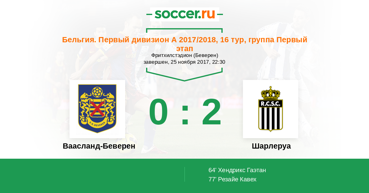 | Ваасланд-Беверен | Шарлеруа | |