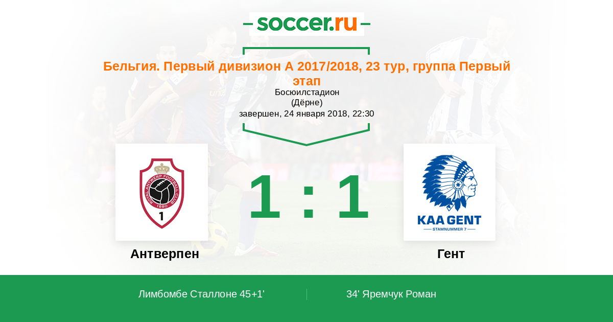 | Антверпен | 42:35 | 20:20 | 22:15 |