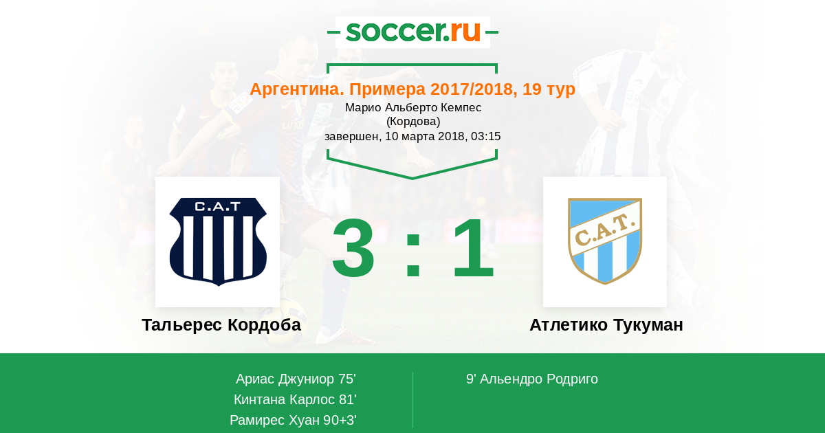 | Тальерес Кордоба | Атлетико Тукуман | |