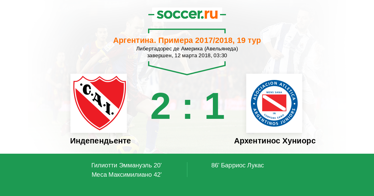 | Индепендьенте | 44:36 | 26:16 | 18:20 |