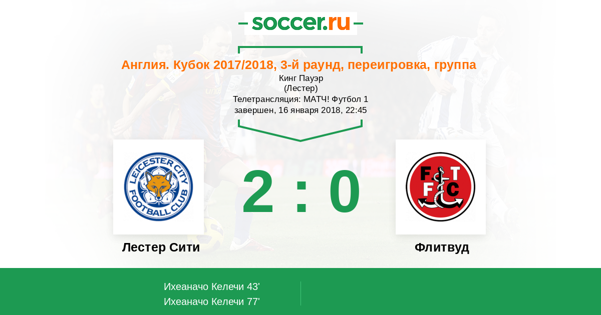 | Лестер Сити | Флитвуд | |