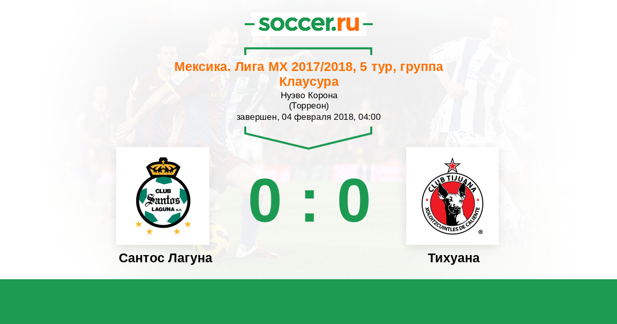 | Сантос Лагуна | 44:41 | 25:20 | 19:21 |