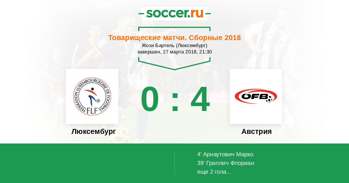 | Люксембург | 4:25 | 1:8 | 3:17 |