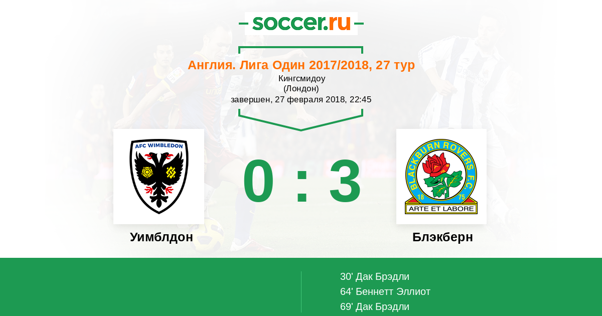 | Уимблдон | Блэкберн | |