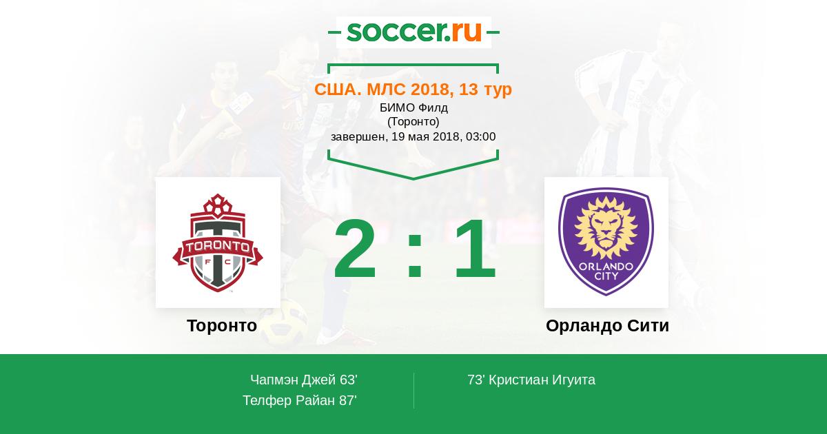 | Торонто | Орландо Сити | |