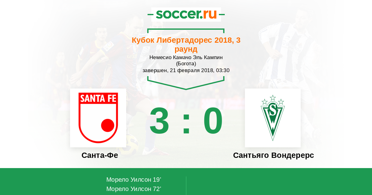 | Санта-Фе | 2:1 | 0:0 | 2:1 |