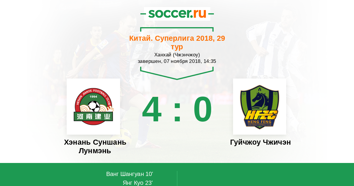 | Хэнань Суншань Лунмэнь | 3:4 | 0:1 | 3:3 |