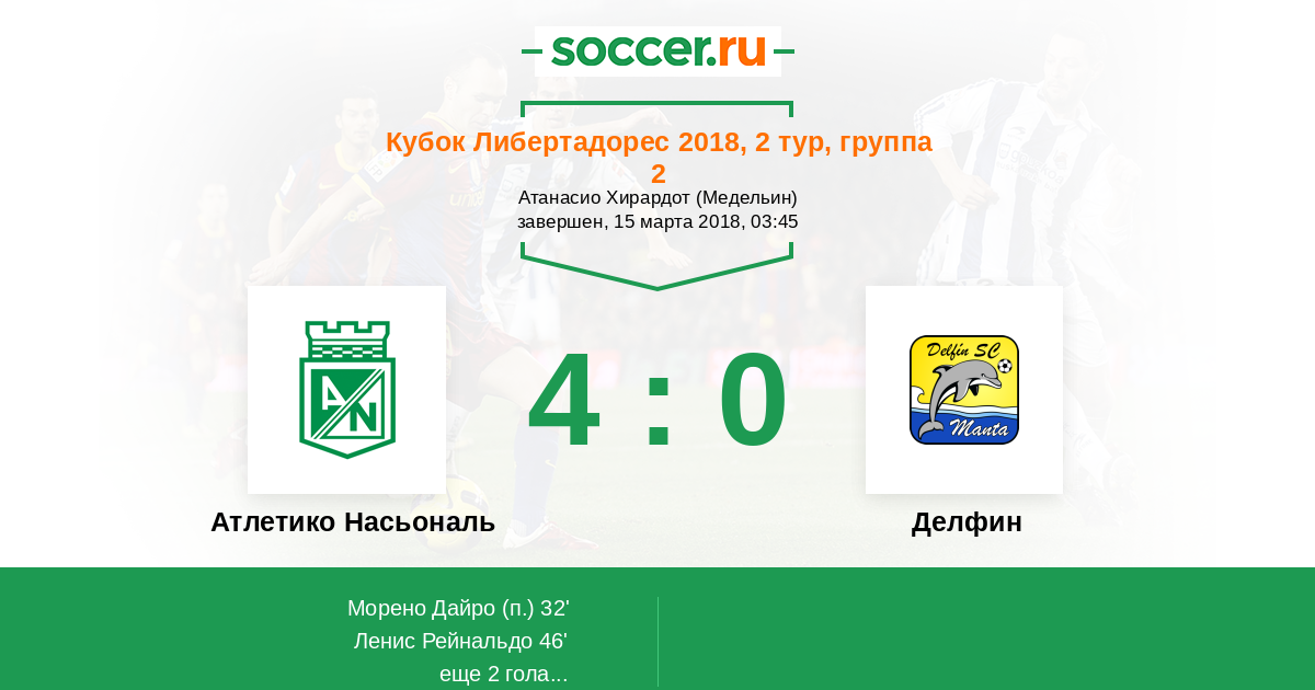 | Атлетико Насьональ | Делфин | |
