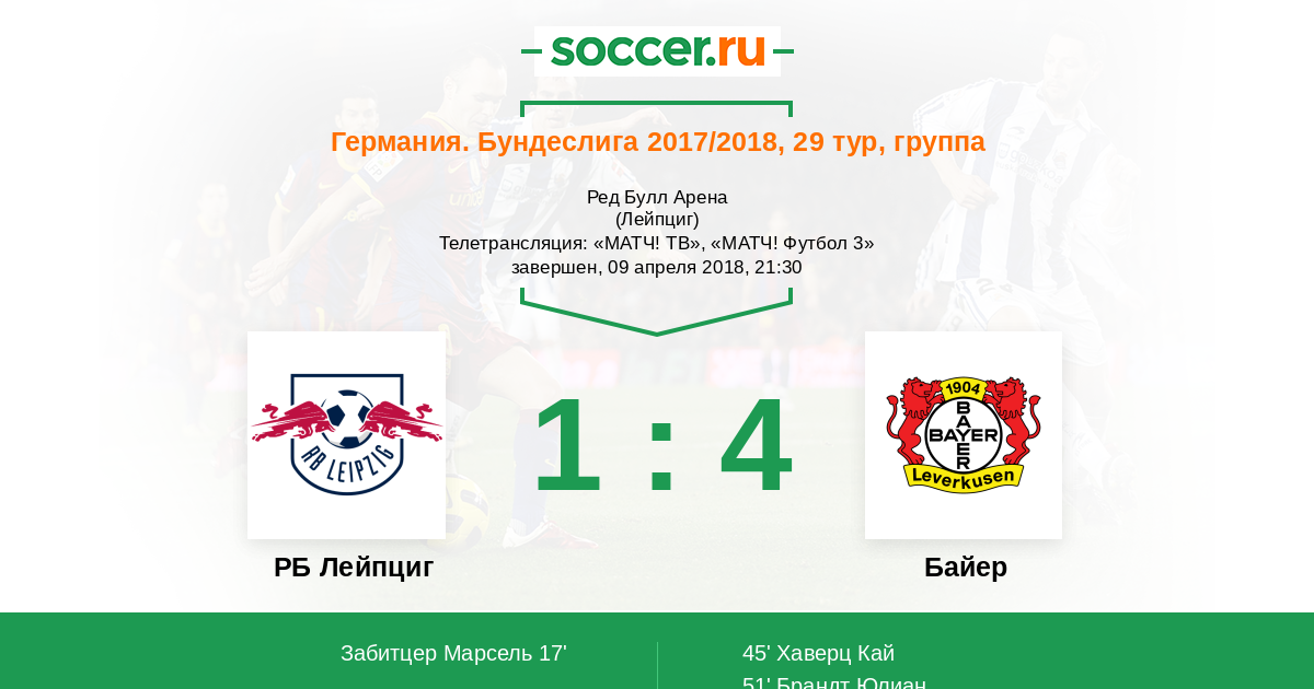 Лейпциг, Ред Булл Арена Телетрансляция: "МАТЧ! ТВ", "МАТЧ! Футбол 3"