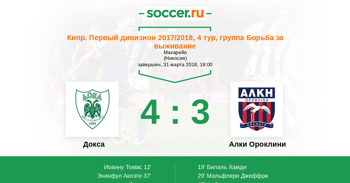 | Кипр. Первый Дивизион | 7 | 4 | 3 | 0 |