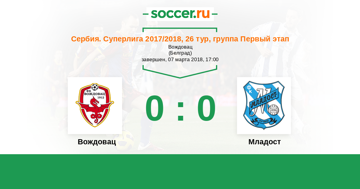 | Вождовац | 36:28 | 21:9 | 15:19 |