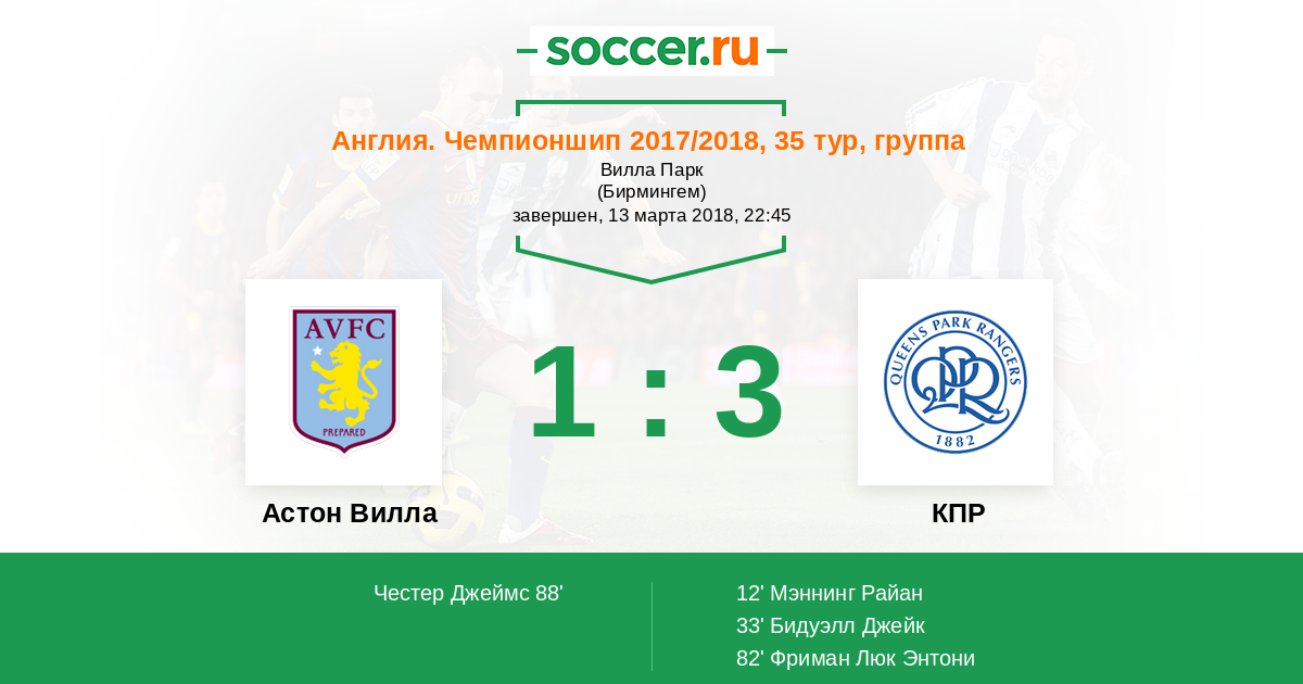 | Астон Вилла | КПР | |