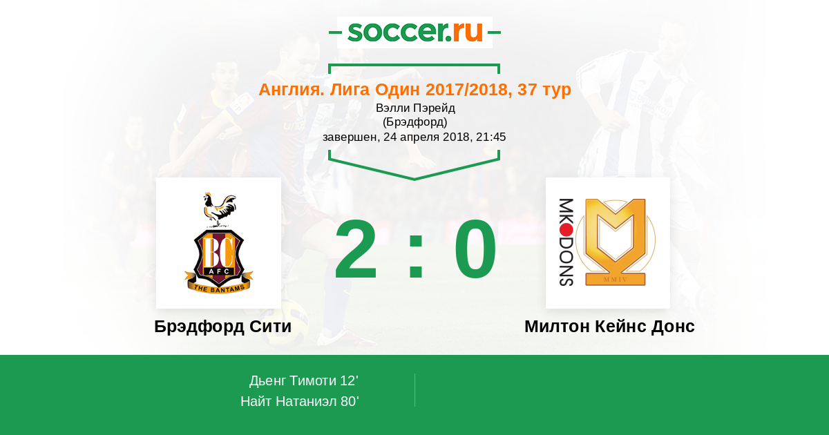 | Брэдфорд Сити | Милтон Кейнс Донс | |