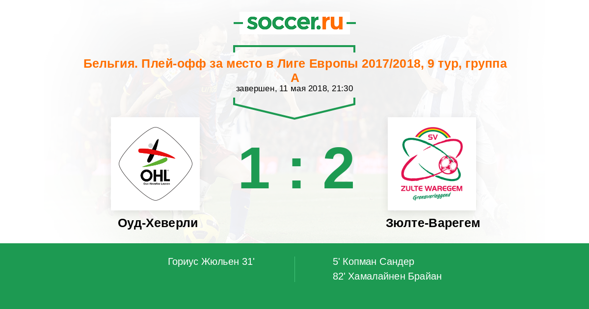 | Зюлте-Варегем | 30:35 | 19:17 | 11:18 |