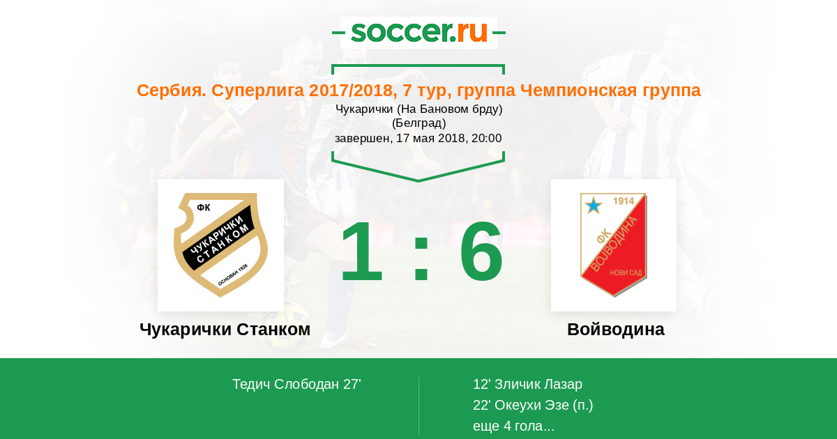 Последние 5 игр дома Чукарички Станком