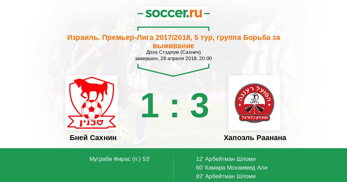 | Бней Сахнин | Хапоэль Раанана | |