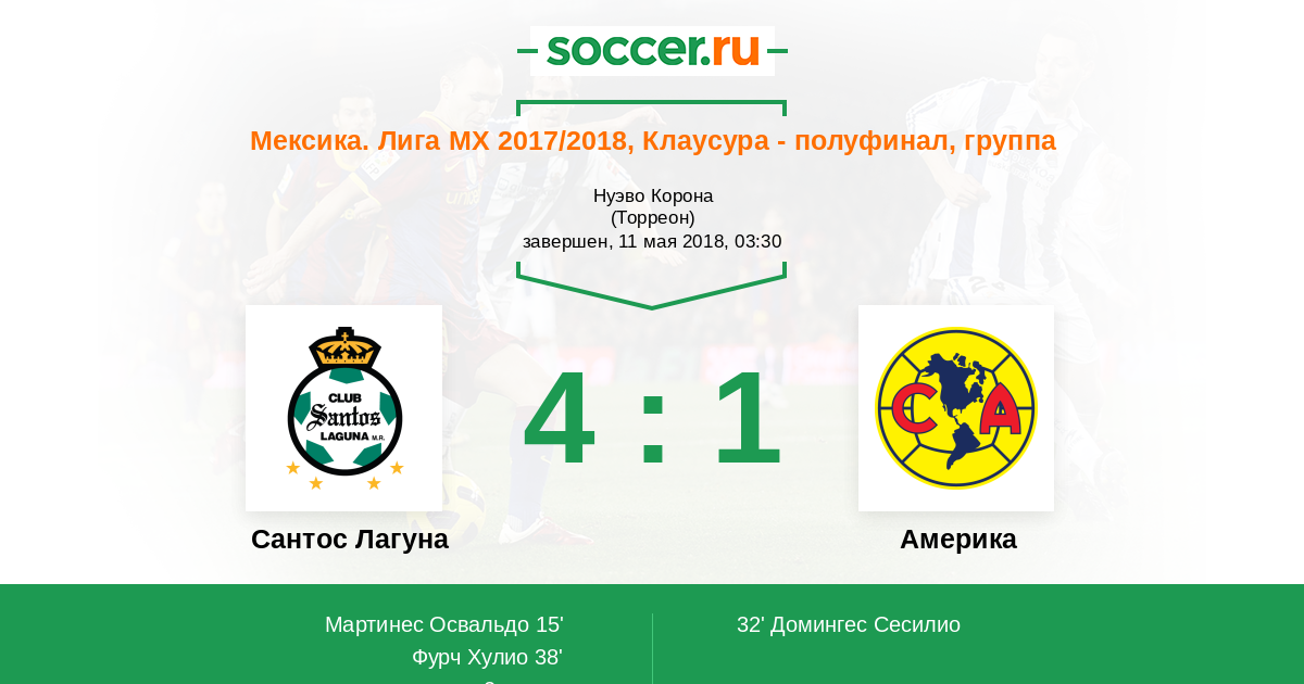 | Сантос Лагуна | 66:97 | 34:39 | 32:58 |