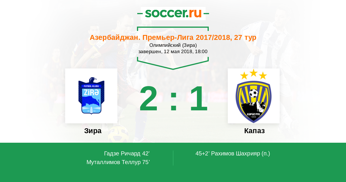 | Азербайджан. Премьер-Лига | 21 | 14 | 2 | 5 |