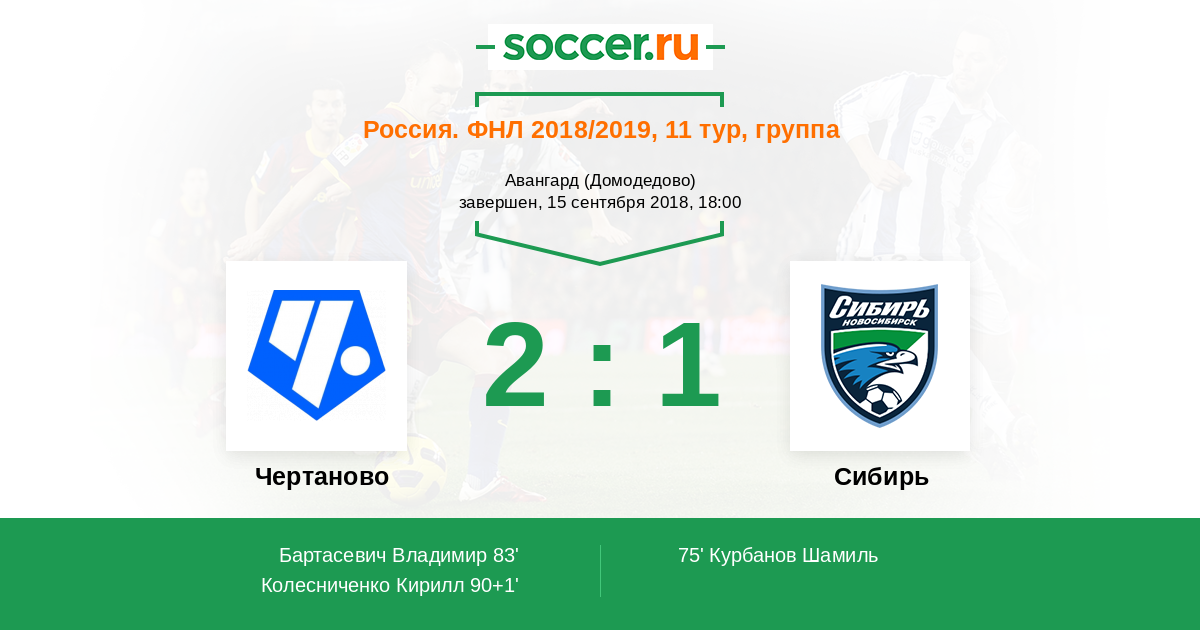 | Чертаново | 2:1 | 0:0 | 2:1 |