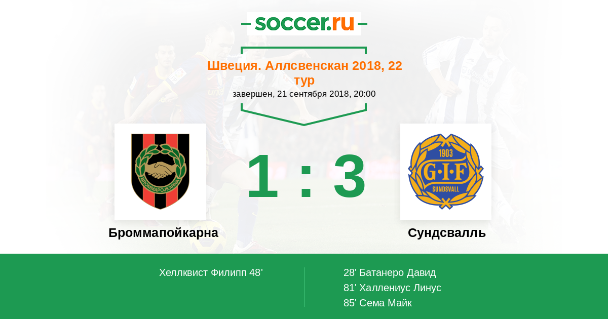 | Броммапойкарна | 1:6 | 0:0 | 1:6 |