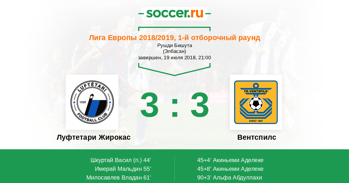 | Луфтетари Жирокас | 0:5 | 0:0 | 0:5 |