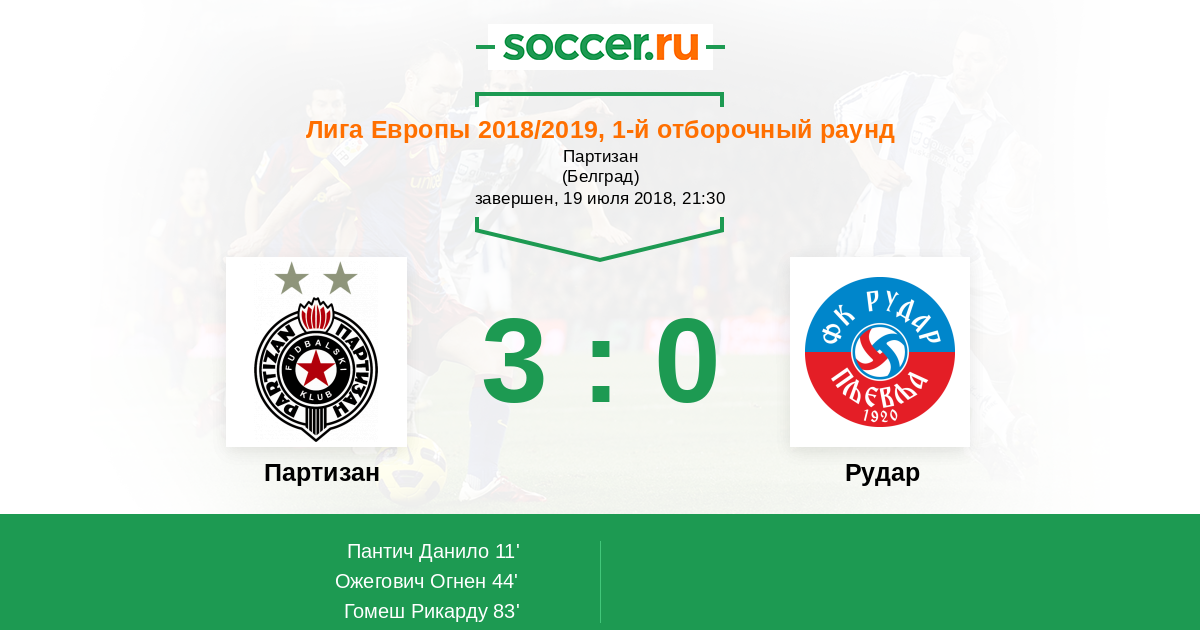 | Партизан | 3:0 | 0:0 | 3:0 |