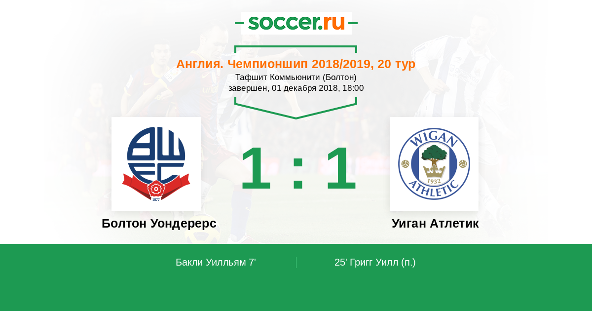 Уиган Атлетик 1:1 Болтон Уондерерс