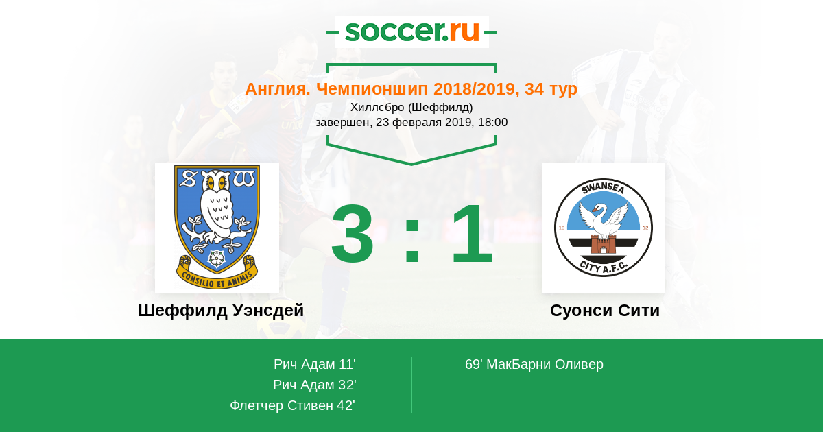 | Шеффилд Уэнсдей | Суонси Сити | |