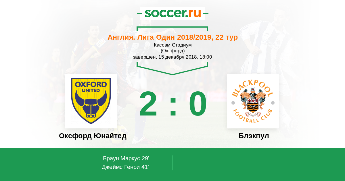 | Оксфорд Юнайтед | Блэкпул | |