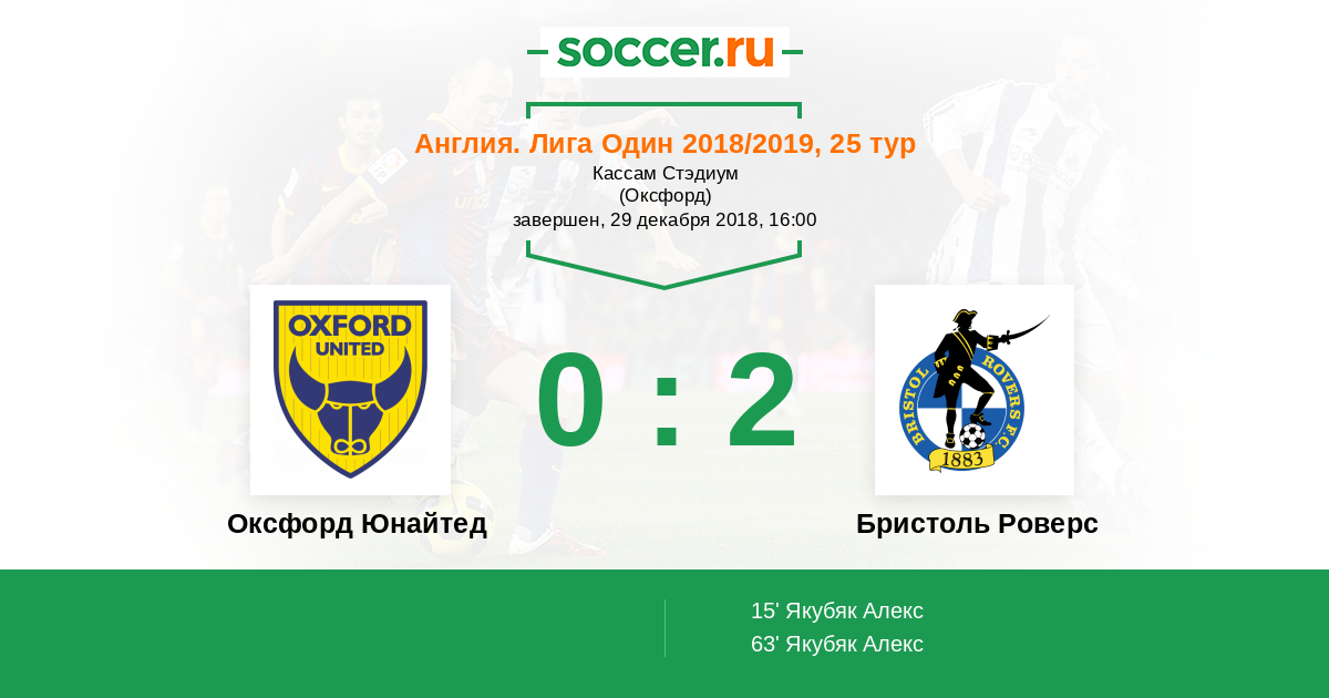 | Оксфорд Юнайтед | Бристоль Роверс | |