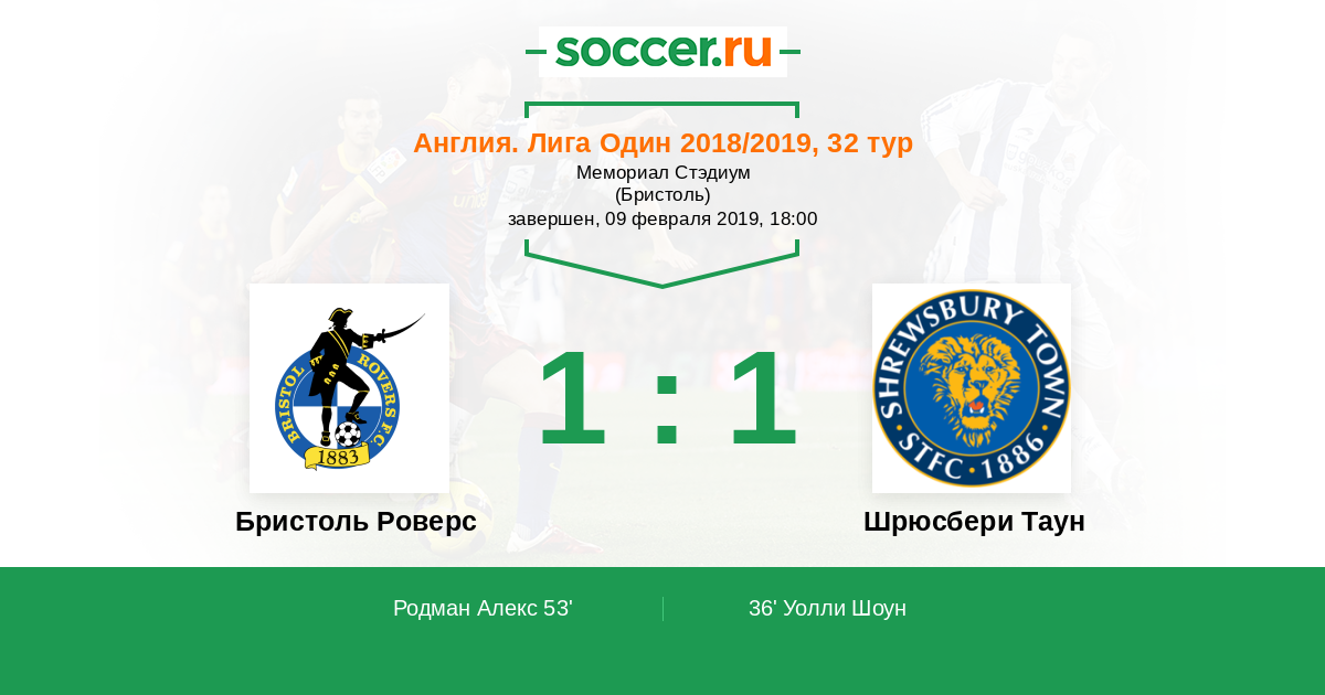| Бристоль Роверс | Шрюсбери Таун | |