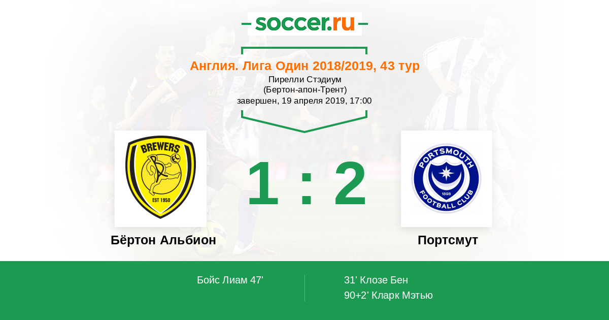 | Бёртон Альбион | Портсмут | |