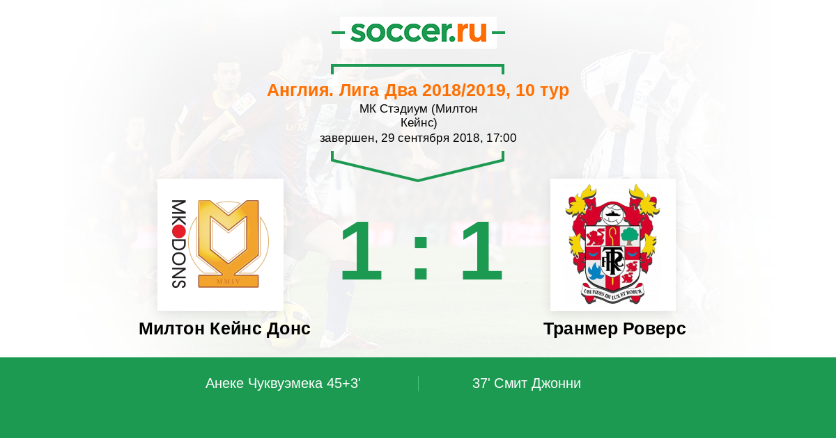 | Милтон Кейнс Донс | Транмер Роверс | |