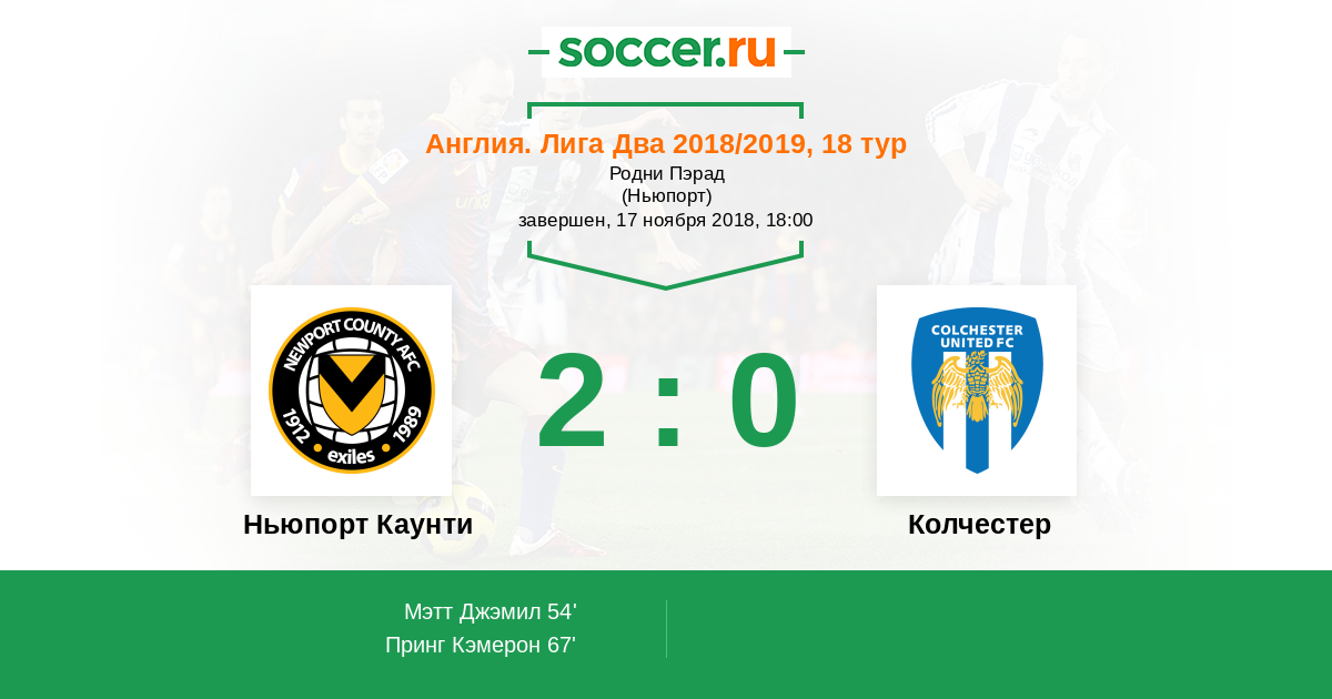 | Ньюпорт Каунти | Колчестер | |
